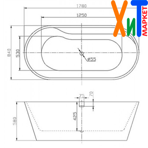 Ванна - 1 шт. Дополнительно: каркас, слив-перелив, панели