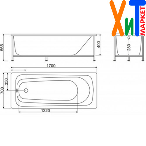 Ванна - 1 шт. Дополнительно: каркас, слив-перелив, панели