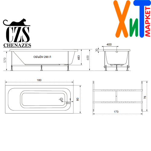 Акриловая ванна Chenazes Деника 180x80 CZS62049TR