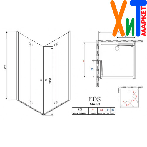 Душевой уголок Radaway EOS KDD-B 80x80 прозрачное стекло