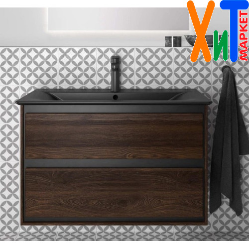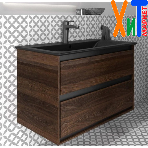 Тумба c раковиной подвесная 80 см Ideal Standard CONNECT AIR ЧЕРНЫЙ МАТОВЫЙ+ДЕРЕВО R0474NE