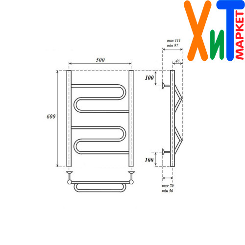 Полотенцесушитель электрический Point PN01156E П2 500x600 левый/правый, хром