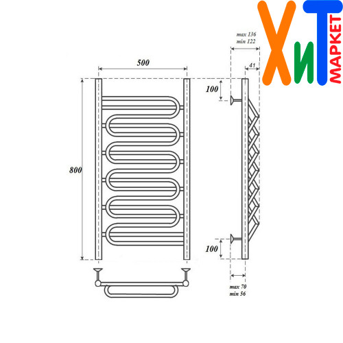 Полотенцесушитель электрический Point PN01158SE П7 500x800 левый/правый, хром