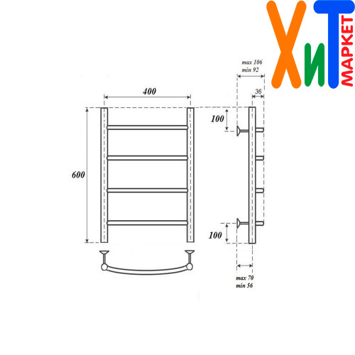 Полотенцесушитель электрический Point PN04146E П4 400x600 левый/правый, хром