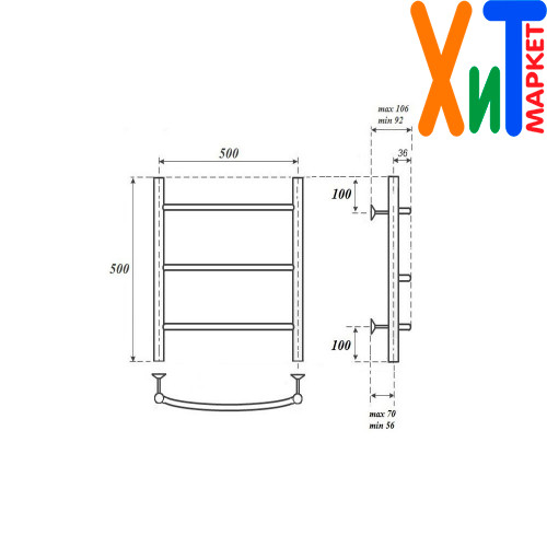 Полотенцесушитель электрический Point PN04155E П3 500x500 левый/правый, хром