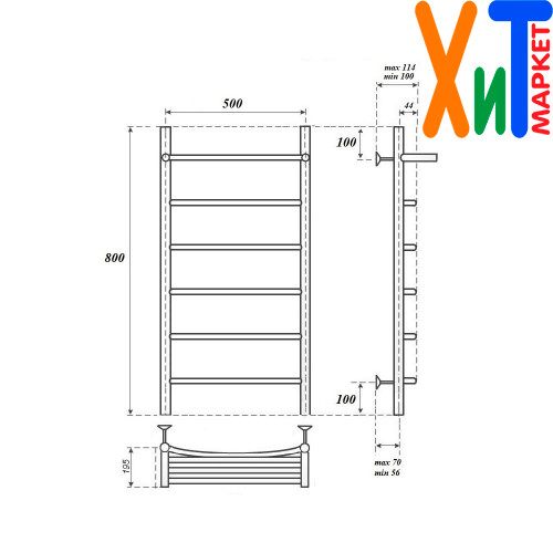 Полотенцесушитель электрический Point PN04158PE П5 500x800 с полкой левый/правый, хром