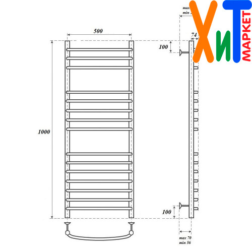 Полотенцесушитель электрический Point PN05150SE П15 500x1000 левый/правый, хром