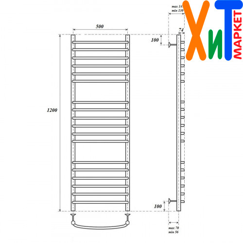 Полотенцесушитель электрический Point PN05152SE П18 500x1200 левый/правый, хром