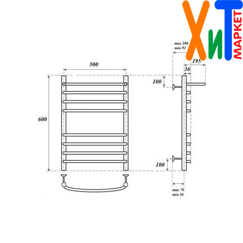 Полотенцесушитель электрический Point PN05156SPE П7 500x600 с полкой левый/правый, хром