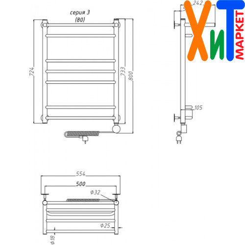 Полотенцесушитель электрический Тругор ЛЦ Идеал комби эл ТЭН 3 П 80x50, с полкой