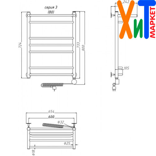 Полотенцесушитель электрический Тругор ЛЦ Идеал комби эл ТЭН 3 П 80x60, с полкой