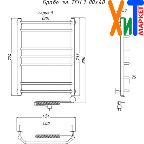Полотенцесушитель электрический Тругор ЛЦ эл ТЭН 3 80x40