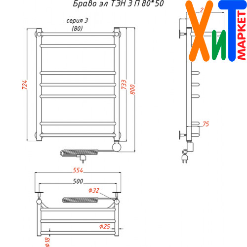 Полотенцесушитель электрический Тругор ЛЦ эл ТЭН 3 80x50