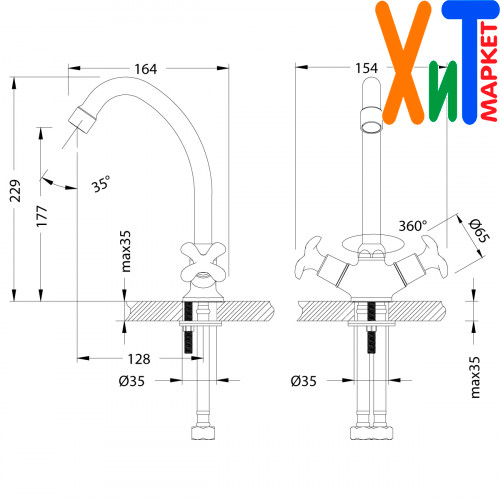 - Кран-буксы с керамическими пластинами (угол поворота – 90 градусов)